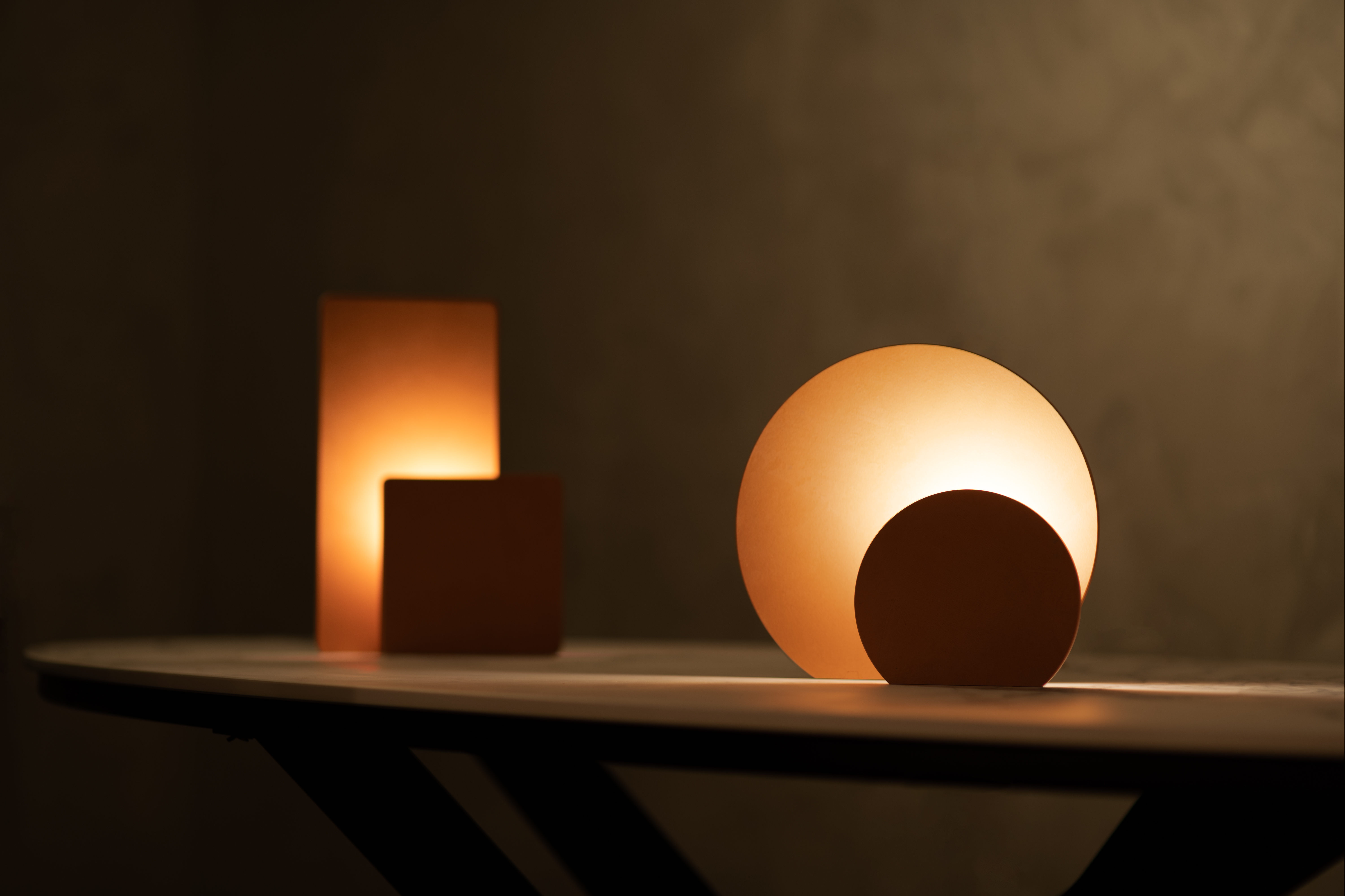 Naša prva kolekcija, Shining Shadow, inspirirana je jednostavnošću i dubokom ljudskom porukom. Dizajn se sastoji od dvije ploče – veće stražnje i manje prednje – s žaruljom smještenom između njih. Ovaj raspored omogućuje da prednja ploča ostane u sjeni, dok je stražnja ploča potpuno obasjana.
